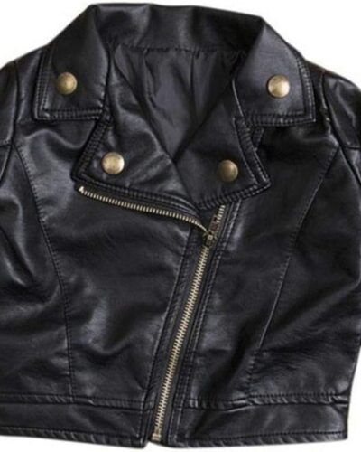 Girls Fashion PU Leather Motorcycle Jacket Children’s Outerwear Slim Coat 2-12 Years