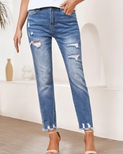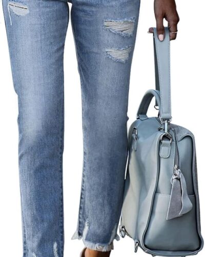 Women Jeans Mid Waisted Stretchy Ripped Distressed Tummy Control Straight Ankle Jean for Women Trendy 2025