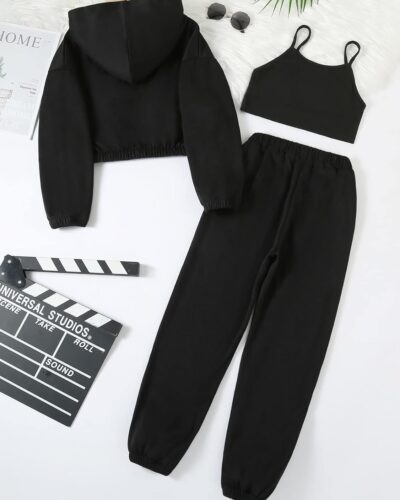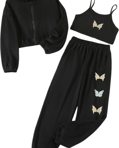 $85.19Girls Graphic Print Clothes Cami Top Sweatpants with Jacket 3 Piece Outfit