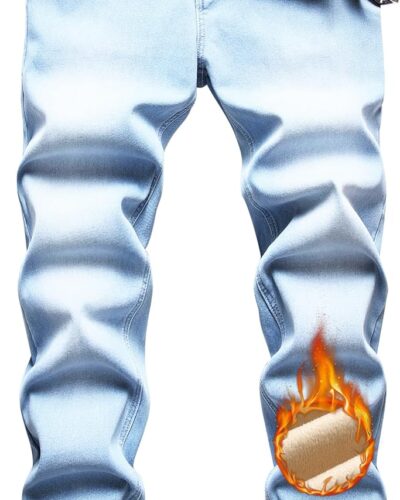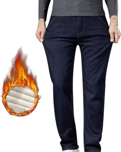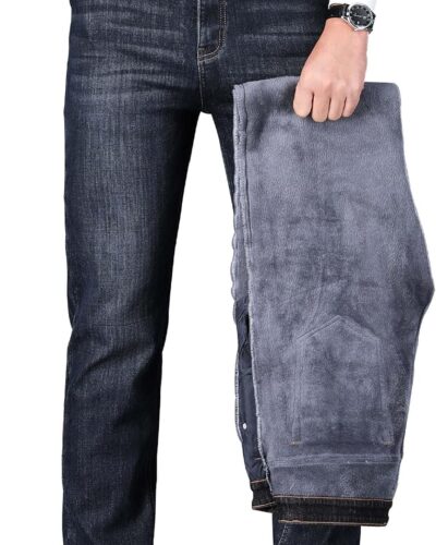 $71.73Fleece Lined Jeans for Men Warm Straight Leg Pants Outdoor Velvet Stretch Denim Pants Winter Casual Pants