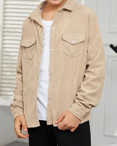 $70.73Boy Corduroy Long Sleeve Shirt Shacket with Pockets Size 6-15 Years Old
