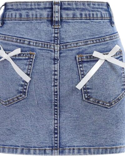 $63.50Girl’s Cute Bow Denim Skirt Y2k Straight Pencil Jean Mini Skirt