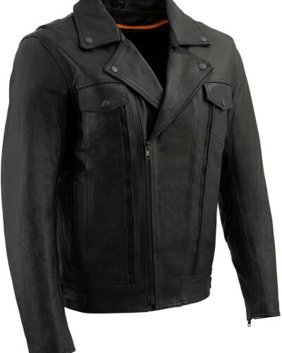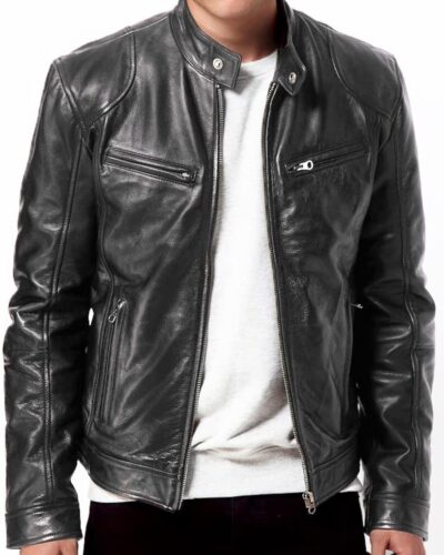$93.60Men Black Leather Motorcycle Riders Jacket w/Multi-Utility Pockets