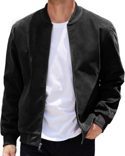 Men Casual Varsity Jacket Vintage Lightweight Suede Bomber Jackets