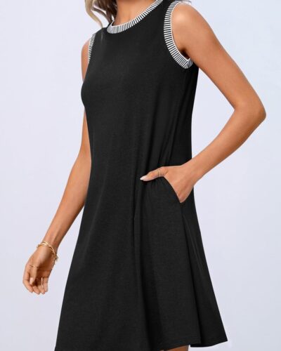 Women Summer Spring Casual Beach Sundress 2025 Vacation Sleeveless Tank Crewneck Loose Coverup Mini Dresses