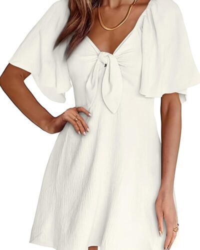 Women Dresses 2025 Spring Summer Deep V Neck Elegant Bow tie Mini Dress S-XL