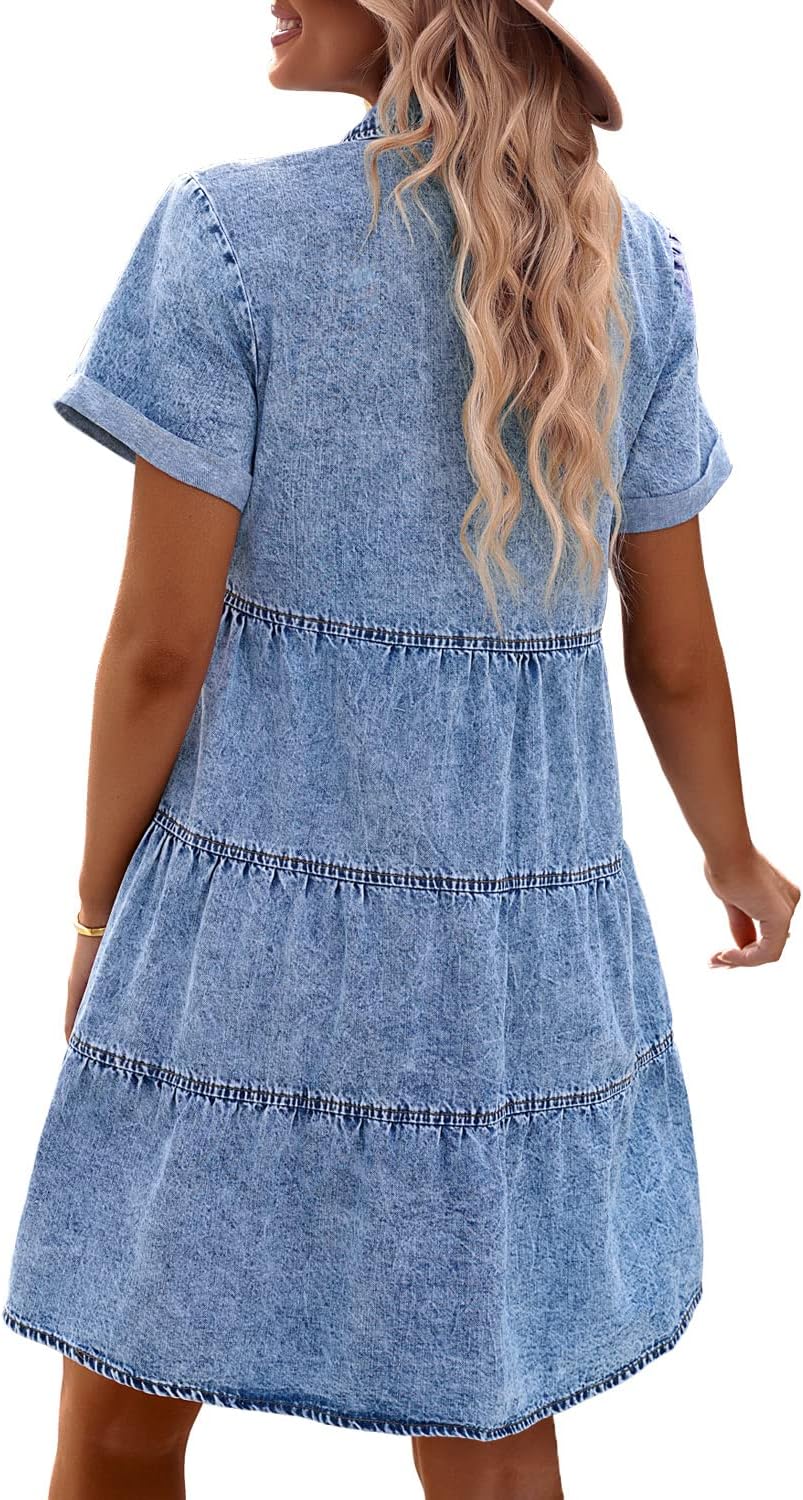 • Feature: Babydoll dresses for women features collared neck, solid color design, short sleeves, and tiered design at back, making the shirt dress for women elegant and flattering. Tiered babydoll denim dress is a must-have item in your wardrobe as a daily wear dress.
