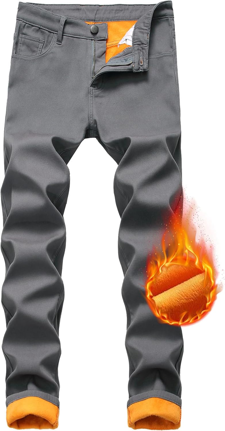 - Easy to Match: Winter thermal warm thicken fleece lined jeans for men are the simple and basic style,simply pair with a hoodie, sweater or shirts.This fleece lined pants for men would be your best choice either for work or casual wear in the winter.