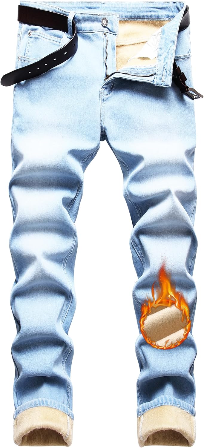 - CLASSIC STYLE – Mens fleece lined jeans Classic 5 pockets design, these fleece lined pants men fit perfectly on your hips. No matter your size, you’ll love the look of our fleece-lined men’s styles.