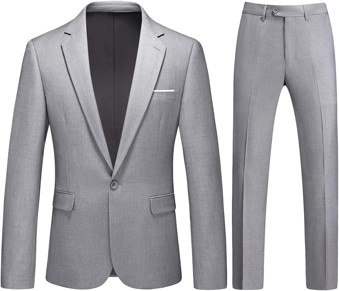 - Mens 2 piece suit slim fit one button notch lapel business tuxedo suits for men (suit jacket + pants)