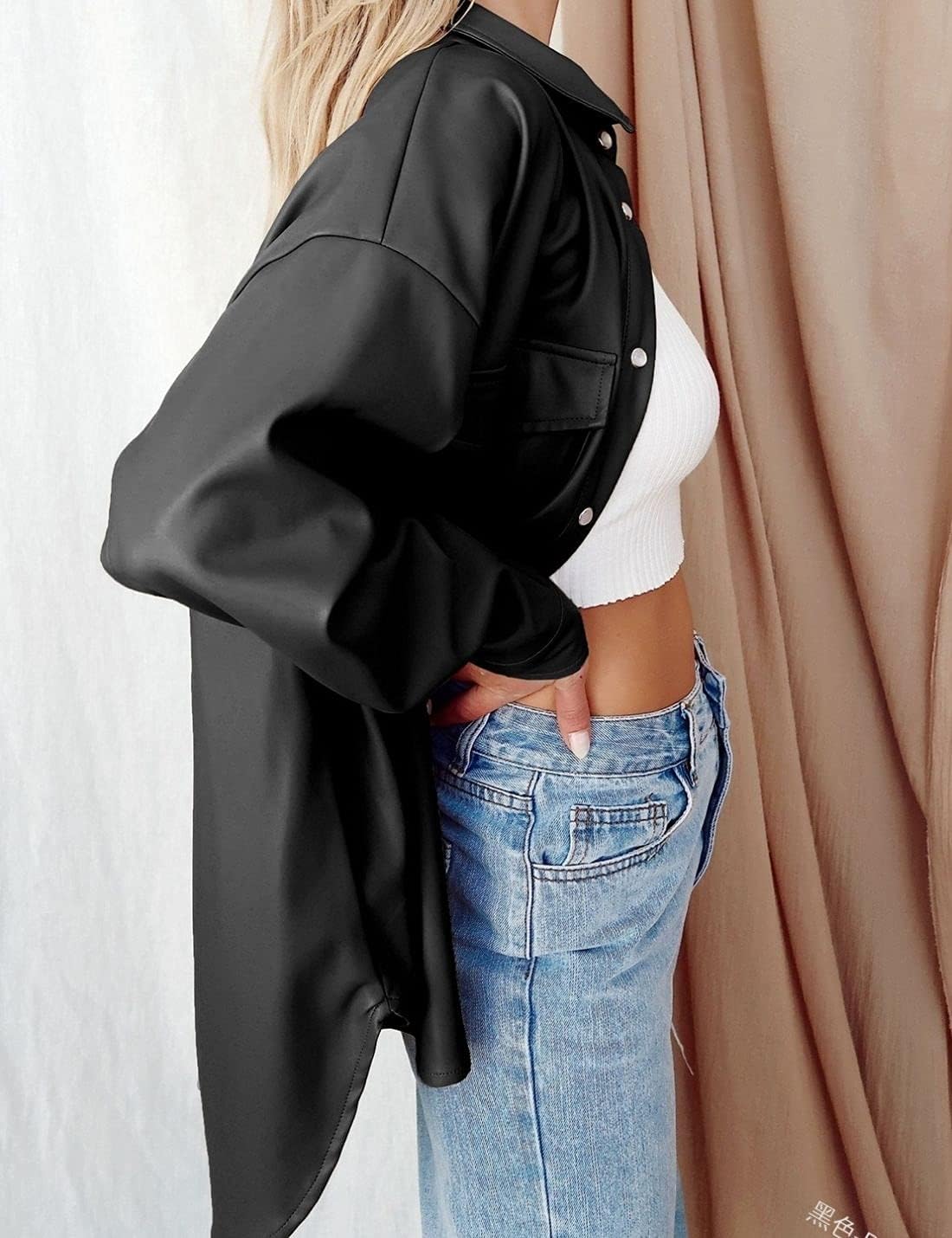- Cool fashion oversize PU jacket moto biker outwear must be an indispensable item in your wardrobe to pair with t shirt, sweater, jeans, leggings, pullover, boots